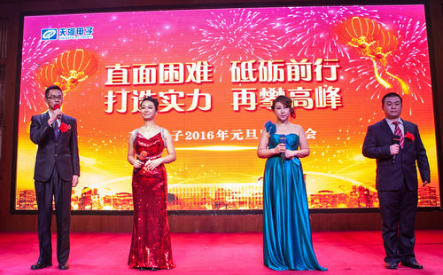 2015年12月31日,天河電子2016年元旦晚會在星光大酒店二樓場鑫軒隆重舉行,大會表彰了2015年度在公司市場、研發(fā)、工程等各個領域作出突出貢獻的優(yōu)秀團隊和個人。公司總經(jīng)理苗立在會上做了重要講話,總結了2015年我們所經(jīng)歷的挫折與喜悅,分析了2016年的行業(yè)市場形勢,并提出2016年我們的工作目標,那就是進一步強化“三個意識”,做好“三個堅持”,著重做好“三項管理工作”,做好“三個引進工作”,實施“三個打造”,全面提升公司綜合實力,把握機遇,力爭使公司2016年經(jīng)營業(yè)績創(chuàng)歷史最高紀錄 。