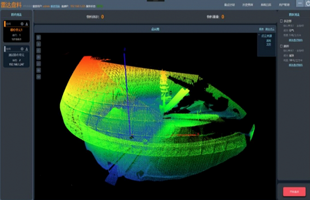 斗輪機盤料儀部署在斗輪機臂架兩端,內置盤料儀嵌入式程序。通過臂架動 作帶動斗輪機盤料儀對其下方的料堆進行掃描,同時從系統(tǒng)服務器實時獲取斗輪 機的走行位置、旋轉角度、俯仰角度及臂架的旋轉方向等維度定位數據,將掃描 數據轉換為料堆的三維坐標點數據,并將獲得的三維坐標點信息上傳至雷達應用 單元進行處理.....